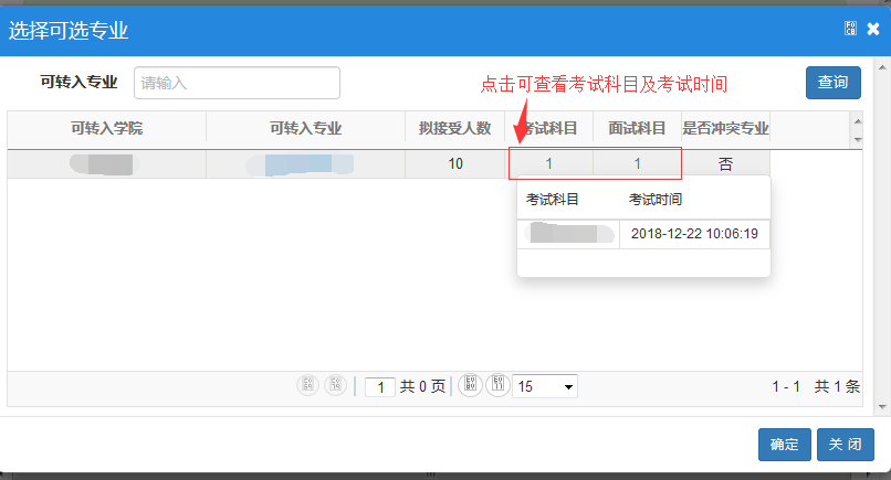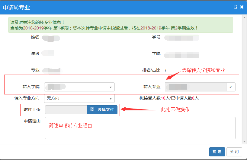 填写转专业信息:
