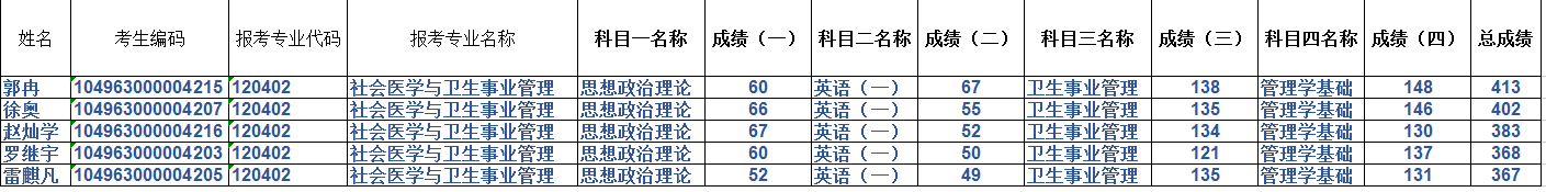 120402 | 社会医学与卫生事业管理 | 全日制脱产 | 9 |