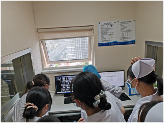 随后,参观指导员带领同学们参观了医院11楼数字化诊疗中心和5楼放射设备,了解目前行业先进的放射设备如何操作;参观显微镜治疗中心,学习显微设备的操作流程。