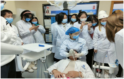 讲座结束后,同学们分三组由工作人员带领,分别参观了医院的数字化诊疗中心,口腔医疗放射设备和特色儿童科室——三叶儿童口腔科室,科室先进的基础设施,可爱的卡通氛围设计,暖心的高端仪器设备,得到了同学们的点赞。