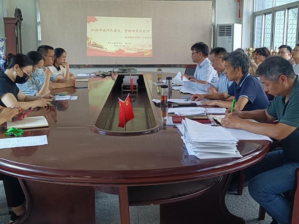 随后,陈汉想以“加强师德师风建设,争做四有好老师”为主题讲授廉政党课,带领全体教职工集中学习《新时代高校教师职业行为十项准则》,习近平总书记关于“三个牢固树立”、“四有”好老师、“四个引路人”、“四个相统一”、“六要”等重要论述,并通报了教育部公开曝光的违反教师职业行为十项准则的典型案例。陈书记强调,师德师风是评价教师素质的第一标准,准则是教师职业行为的基本规范,必须将准则要求落实到教师管理具体工作中,老师们应牢记为党育人、为国育才的使命,争做四有好老师。