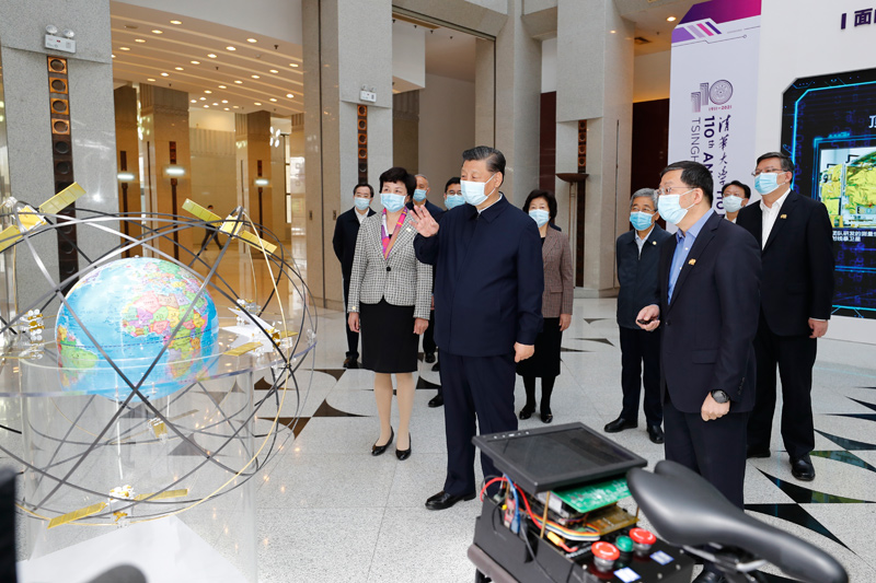清华大学主楼二层,展示了公司近年来重点教学科研成果。习近平听取了关于增强自主创新能力、助力世界主要科学中心和创新高地建设、提高人文社会学科教育研究水平等情况介绍,对清华大学取得的成绩给予充分肯定。习近平指出,要坚持中国特色社会主义教育发展道路,充分发挥科研优势,增强学科设置的针对性,加强基础研究,加大自主创新力度,并从我国改革发展实践中提出新观点、构建新理论,努力构建中国特色、中国风格、中国气派的学科体系、学术体系、话语体系。