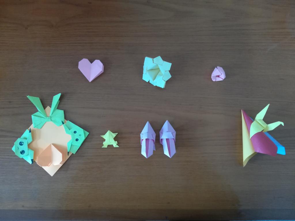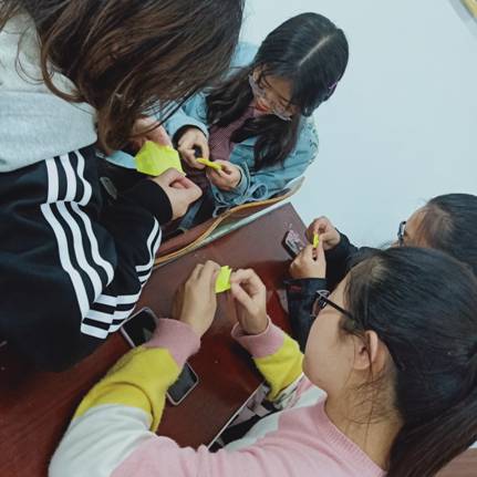 活动比赛中,同学们用抽签的方式分成六个小组,各小组先在二十分钟内完成自己的作品,剩余十分钟再进行各组的评比,最终根据折纸的样式、创意度等推选出一个“最具创意小组”。