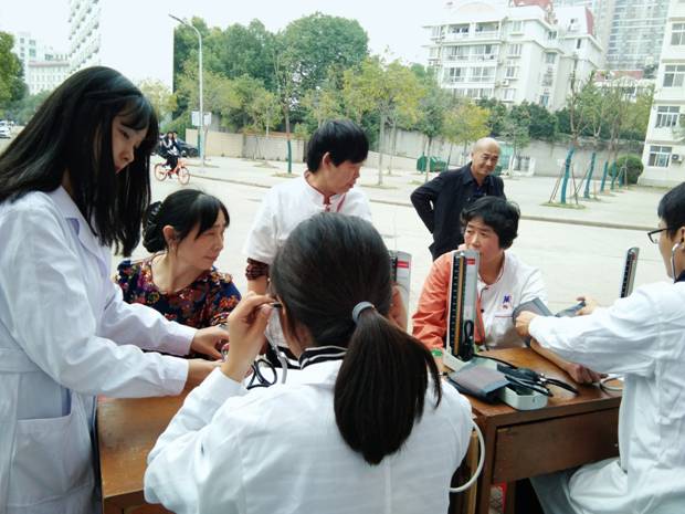 简单的诊疗台搭建完毕,路过的同学、公司的工作人员以及附近的小区居民都纷纷驻足,同学们细心地为就诊群众测量血压、讲解日常疾病的预防、养生保健知识以及康复按摩手法。对高血压患者提出科学饮食建议,提醒他们要改变不良生活方式,多参加锻炼,发现头晕、头痛等问题要及早到医院进行检查治疗,还根据秋冬季节气温多变的情况向居民讲解怎样通过饮食与锻炼科学养生。本次活动为居民提供了面对面、零距离的志愿服务,受到了广大人民的欢迎。