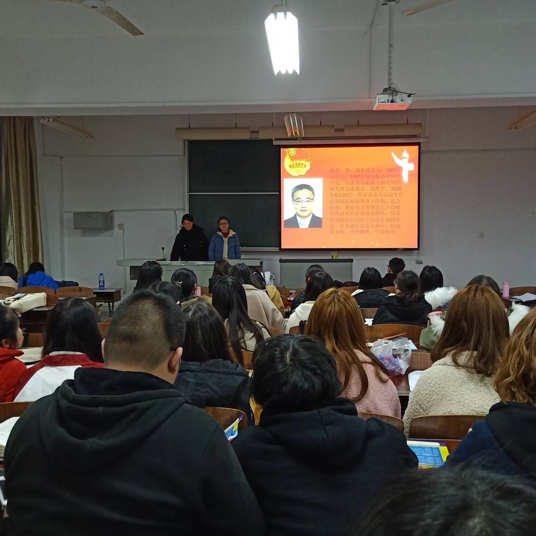 活动以PPT的形式展示了4位同志的生平,让大家对4位同志深入全面的了解他们身上所反映出来的精神。对黄群、宋月才、姜开斌3位同志面对台风和巨浪,挺身而出、英勇无惧,为保护国家重点试验平台壮烈牺牲,用实际行动诠释了共产党员对党忠诚、恪尽职守、不怕牺牲的优秀品格,用宝贵生命践行了共产党员“随时准备为党和人民牺牲一切”的初心和誓言,他们是共产党员的优秀代表、时代楷模。对王继才同志,坚守海孤岛30余载,寸土必守,守土尽责的国家怀情深深打动。