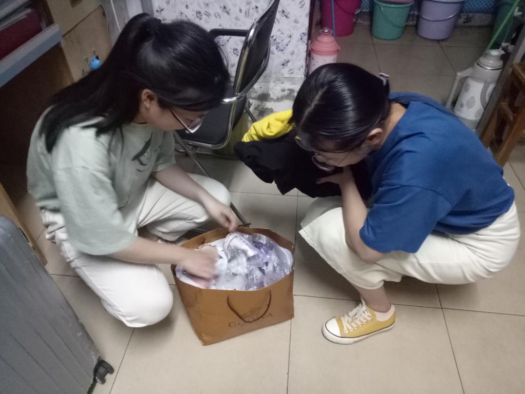 二十多个宿舍,一个多小时的忙碌,满满爱心装满了数十个袋子。其中有搬宿舍带不走的大件物品、可以循环使用的专业书籍,还有半新还闲置的衣物。