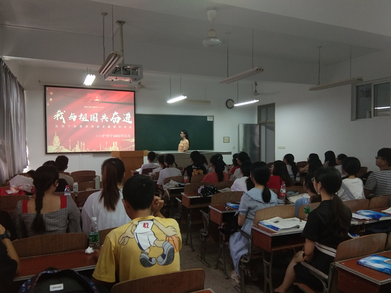 9月6日上午,在3栋703室,为迎庆建国七十周年,护理学1802班开展了“我与祖国共奋进,国旗下的演讲”的特别团日活动,本次活动同学们认真观看了示范片和标识。