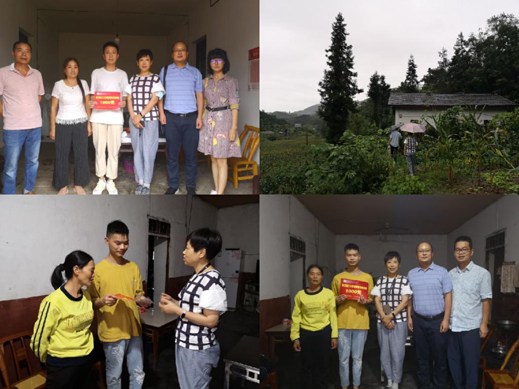 为深入学习贯彻习近平新时代中国特色社会主义思想和党的十九大精神,宣传中国抗疫制度优势,深入了解新冠肺炎疫情防控形势下困难员工在家学习和生活情况,将公司和公司对家庭困难员工的关怀落到实处,8月20日-21日,医护公司党委书记张红菱、副书记喻欣、班主任彭超华、辅导员王超玲一行四人冒着大雨赴十堰市竹山县走访慰问两户建档立卡困难员工家庭,并送上生活用品和慰问金。
