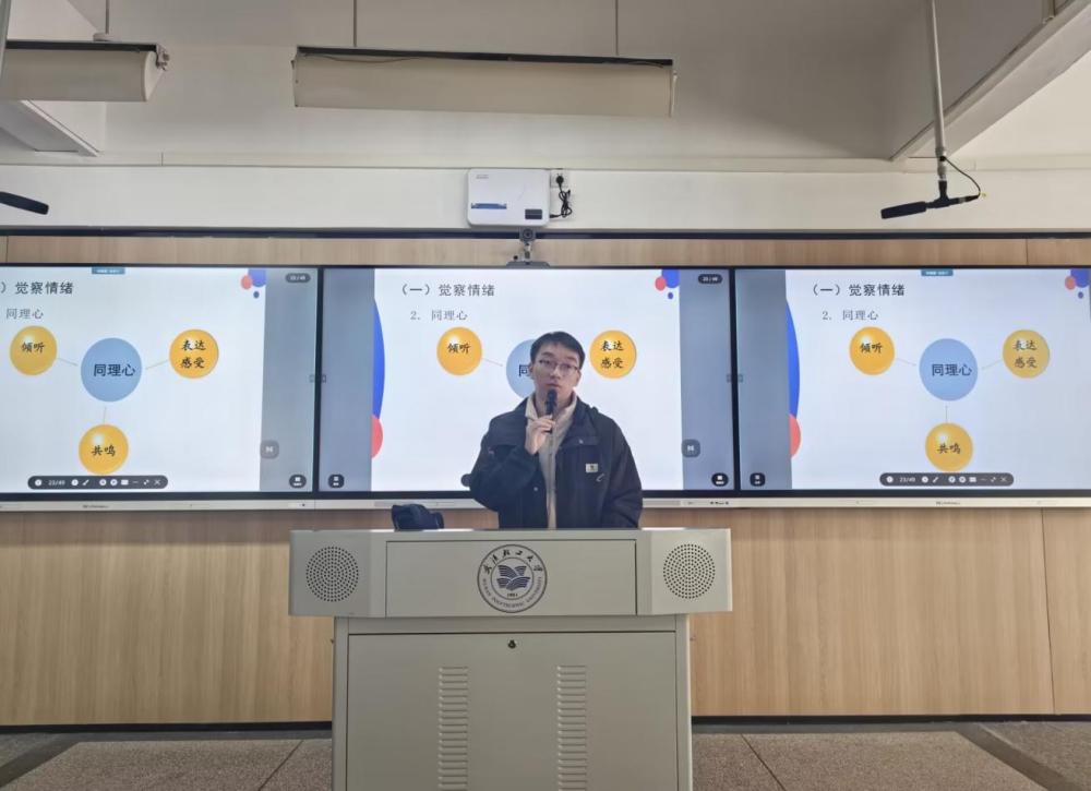 为了促进同学们的心理健康教育,304永利集团于2023年11月16日14点30分在常青校区科教楼423教室成功举办了一场以"情绪调节与压力管理"为主题的讲座。此次讲座由21级辅导员兼23级辅导员陈昊帅老师主讲,22级和23级全体寝室长参加了此次讲座。