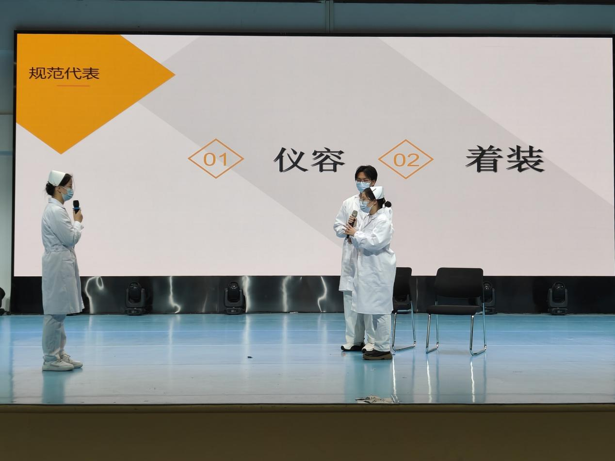 比赛中,选手们状态饱满,他们所带来的表演精彩绝伦,不仅有医患交流现实场景的再现,还有生动有趣的护理礼仪知识问答和别具一格的护理礼仪舞蹈展示,赢得了台下观众的阵阵掌声。许心悦队在礼仪知识问答中与台下观众积极的互动,激发了同学们的参与热情。同学们积极参与,在轻松的你问我答中学习到了许多有用的护理礼仪知识。