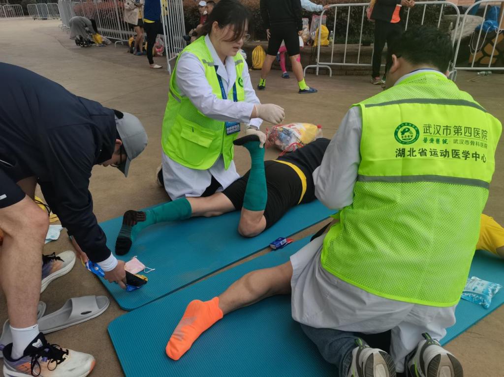 谈及此次活动的感悟和收获,带队老师胡翔说:“我们在场的医生以及医员工坚守岗位,用心用情为运动员保驾护航,就是要让他们没有后顾之忧,全力冲刺,跑出最好成绩。”吴祥坤同学说:“作为一名在医院实习了九个月的康复专业员工,能够在本次比赛中为跑者提供及时的帮助和专业的康复指导,无疑是对我专业能力的充分肯定。希望以后还能有更多机会参与马拉松康复保障工作中,继续为广大马拉松运动员们服务!”