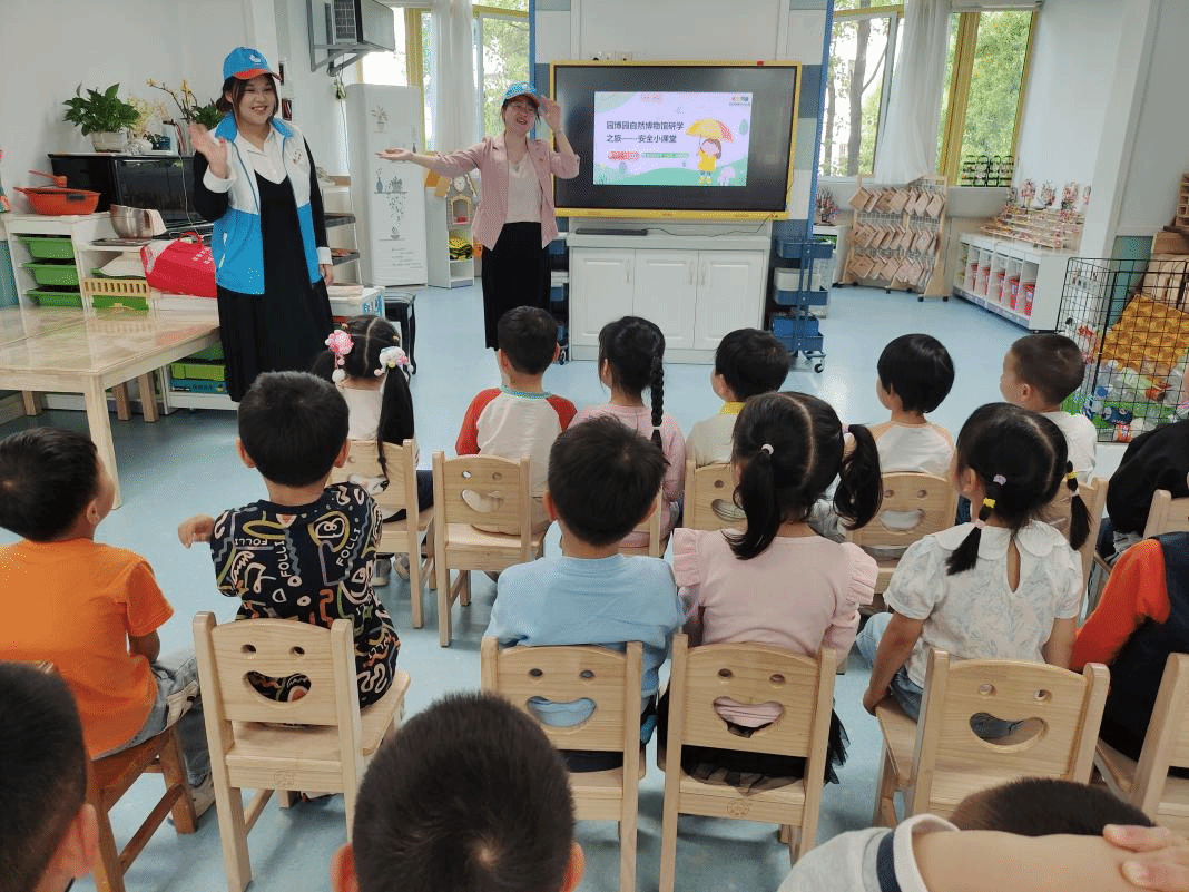 活动伊始,主讲人艾婷以孩子们熟悉的卡通形象“米奇”为引导,通过精心制作的PPT,模拟了一场沉浸式的园博园“云研学”。屏幕上,“米奇导游”带领小朋友们“游览”园区,逐一讲解研学过程中可能遇到的安全隐患。从研学前要准备的物品,乘坐大巴时的注意事项、在博物馆欣赏展品的注意事项,到迷路的应对措施,以动画形式呈现每一个场景,画面活泼、语言童趣,瞬间吸引了孩子们的注意力。