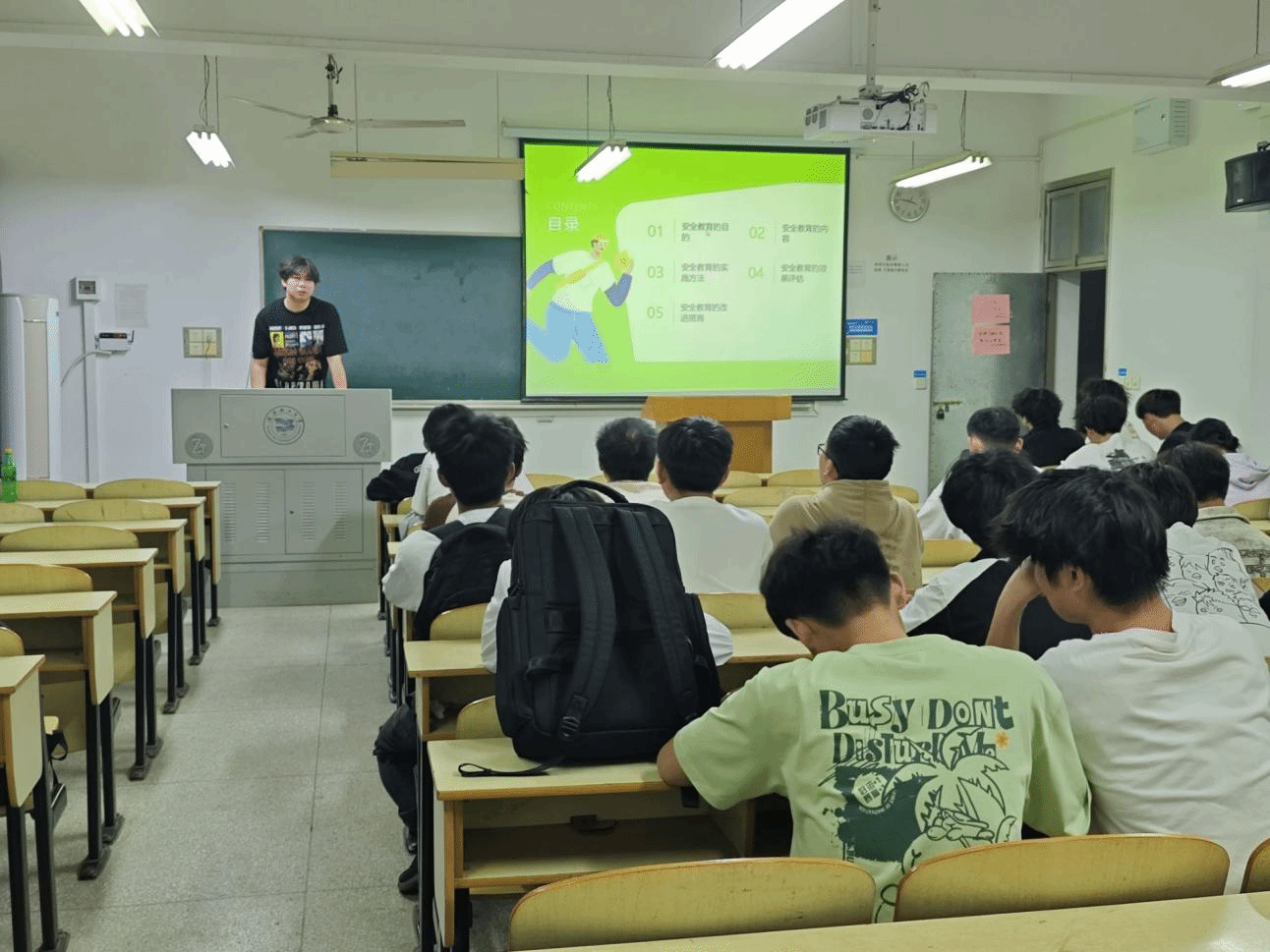 4月16日,康复 2401 班在常青校区3-402教室举办安全教育主题班会,班长周聪结合实际案例,重点强调 “三无” 水域游泳的危险性,普及防欺凌法律知识,并从宿舍用电、交通出行、心理健康等多方面提出具体防范建议。