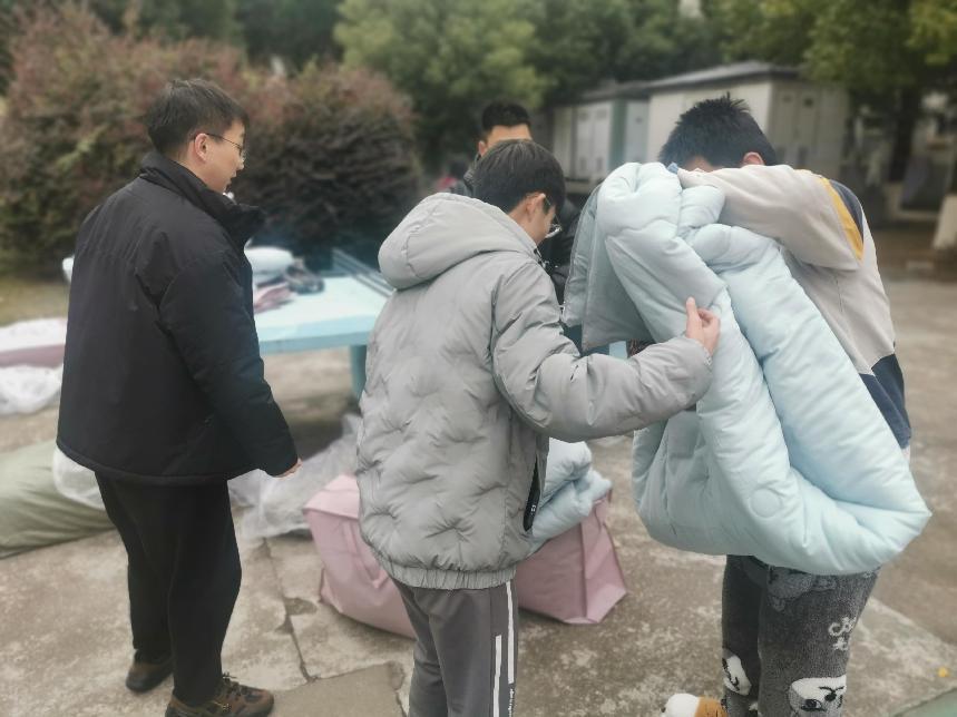 在活动现场,21级及23级辅导员陈昊帅老师亲自将温暖的被褥送到困难员工手中,并亲切地与他们交流,了解他们近期的生活状况和学习情况。受资助的员工纷纷表示感激,感谢公司的关怀和支持。陈老师表示,保障困难员工的基本生活需求是公司的责任,尤其是大寒刚过,凛冬已临,公司更是要尽全力为员工提供温暖的学习和生活环境。此次活动不仅是物质上的帮助,更是精神上的鼓舞,希望能让困难员工感受到轻工这个大家庭的温暖。