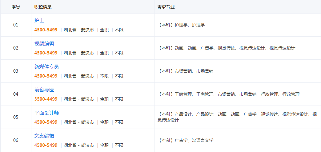 护士、前台导医、视频编辑、文案编辑、平面设计