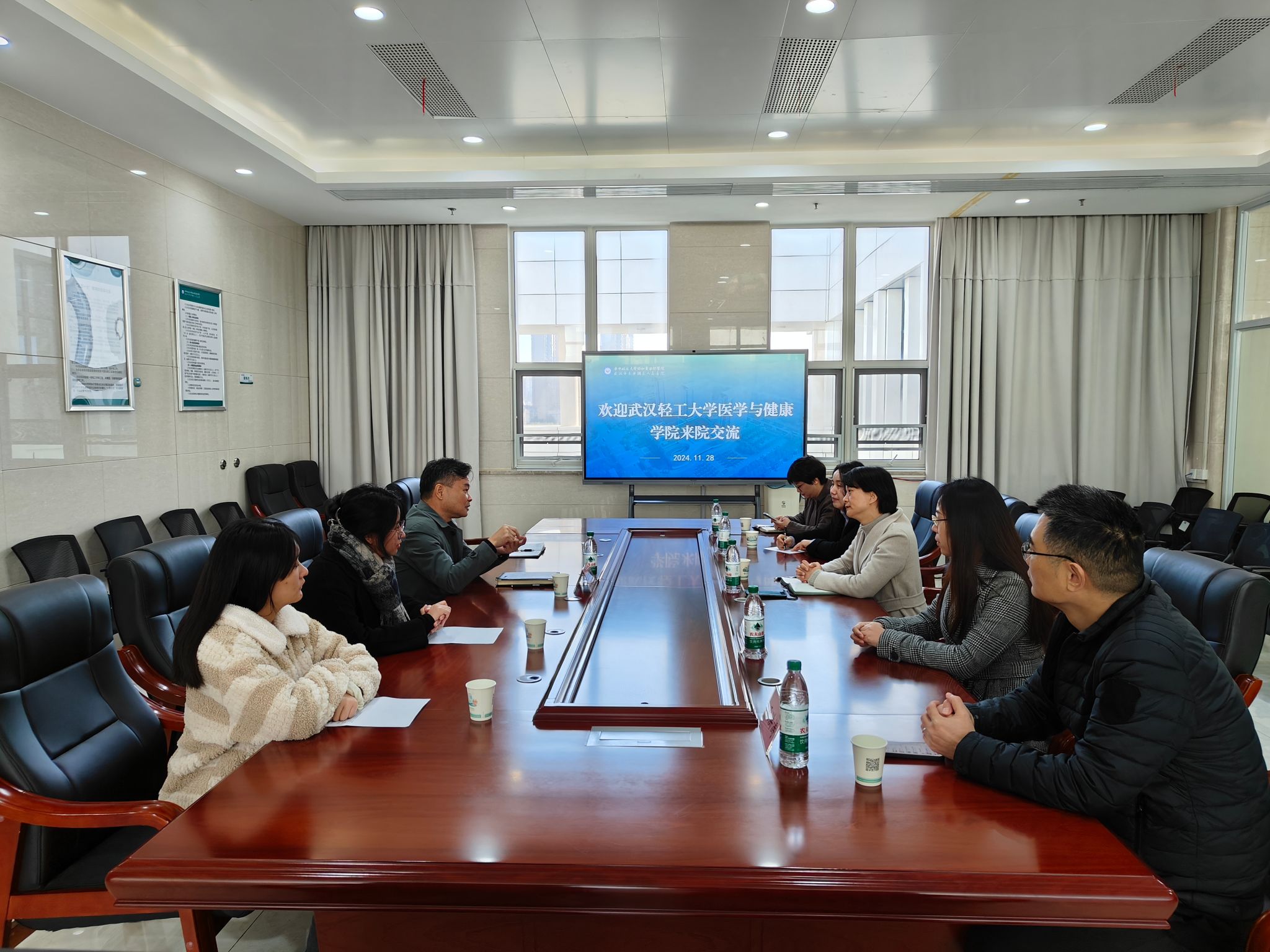 2024年11月28日上午,委书记陈汉想携毕业班辅导员、员工代表一行4人前往华中科技大学协和东西湖医院(武汉市东西湖人民医院)。东西湖人民医院副经理陈英及相关科室、职能部门负责人参加调研。