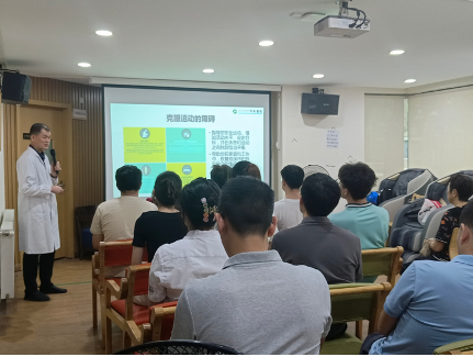 九点半钟,进入室内开始开展以“关节炎与运动健康”为主题的社区科普活动。同济医院康复领域专家为大家讲解了居民保健、运动保健基础知识、相关疾病认识、健康生活方式选择、如何做好合理膳食、合理运动等方面的知识。他丰富生动的讲解十分贴合居民们的日常生活,引得大家频频点头示意,表示受益匪浅。
