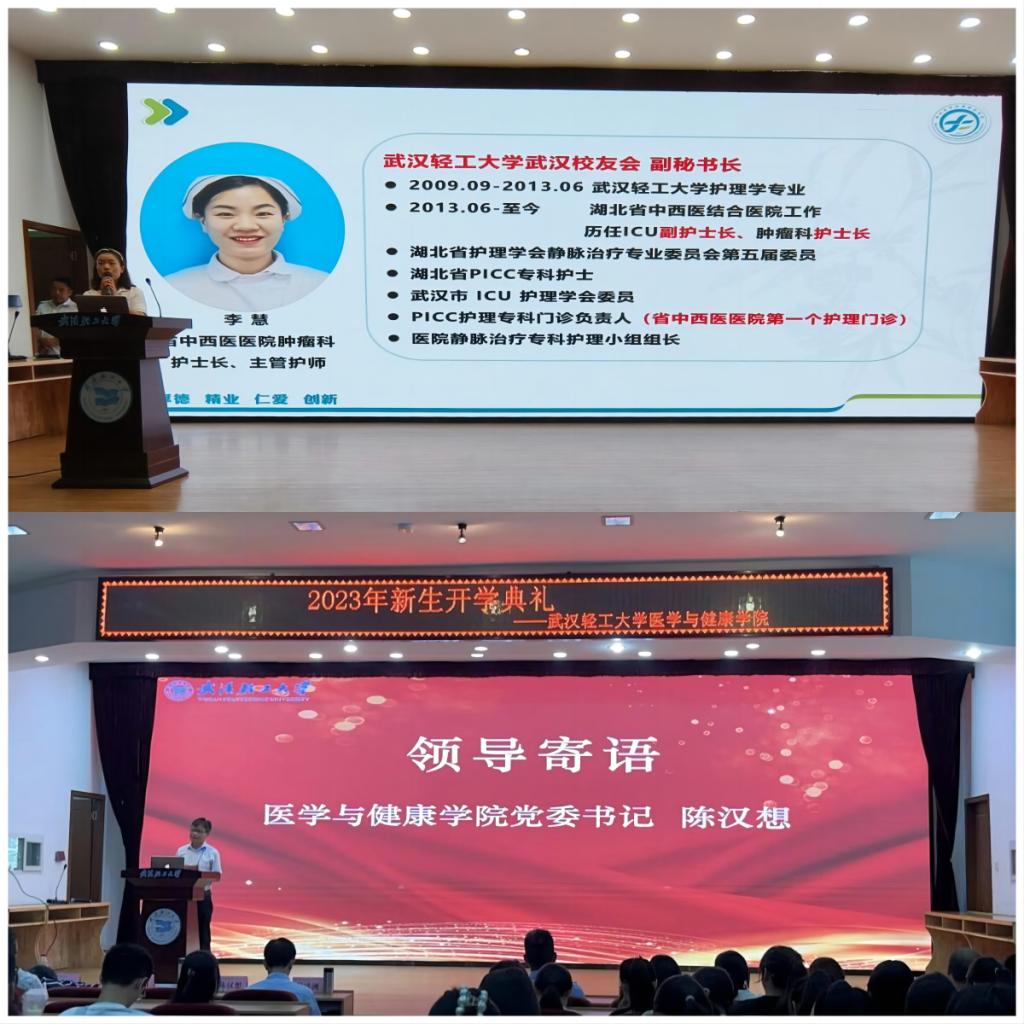开学典礼还邀请了304永利集团优秀员工李慧,李慧学姐简单介绍了自己从轻工毕业后10年的护士生涯经历,对母校以及公司领导、老师们给予的学习机会和耐心教导表示感谢,讲述了自己的工作经历与感悟,特别是在战疫实践中的历练鼓舞和激励了现场的老师和同学们,李慧学姐勉励学弟学妹们奋发有为、努力拼搏,学好专业知识,增强专业能力,才能立足专业领域,在行业中有所建树。研究生员工代表社会医学卫生管理专业2023级高涔同学和本科生代表药学2020级肖吉祥同学分享了自己老员工活的经历与感悟,激励新生们把握当下、砥砺奋进、展望未来。新生代表护理学2023级刘怡恬同学表达了步入304永利集团的喜悦,对迎新志愿者们热情帮助示以由衷的感谢并阐明对美好老员工活的规划与期待。