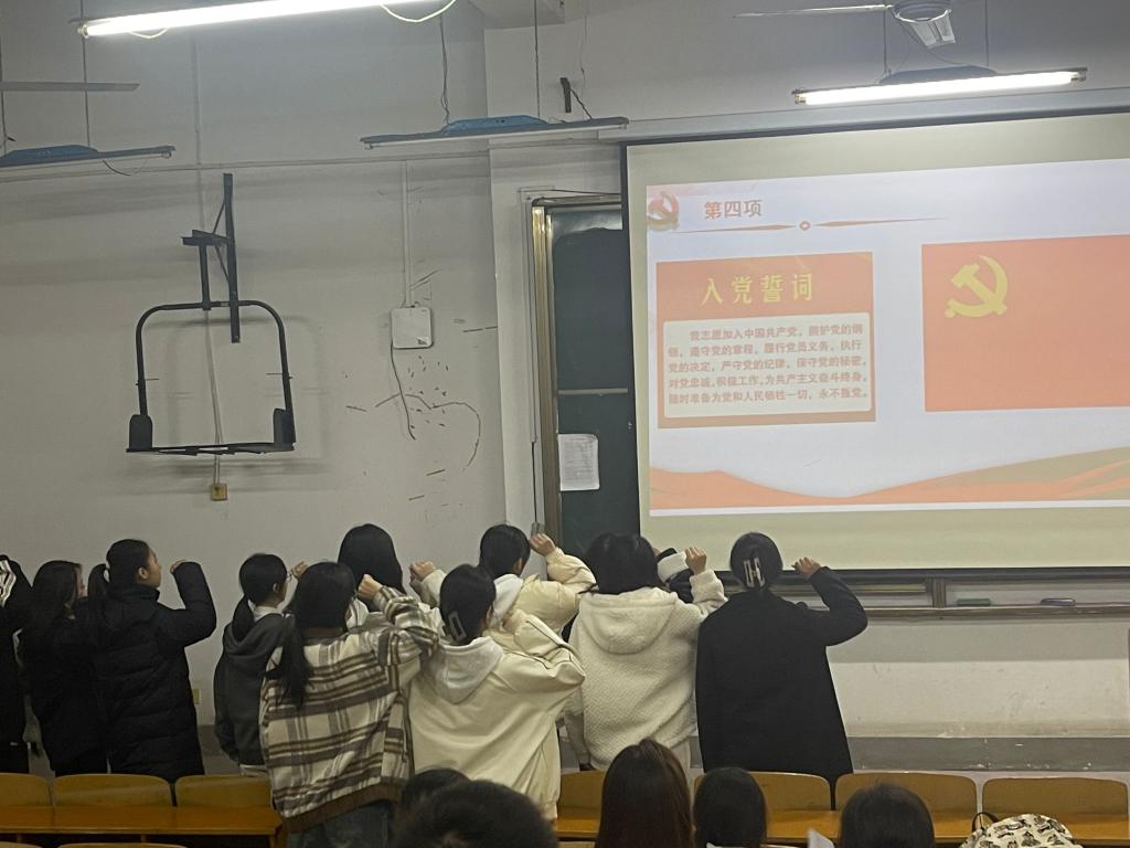 授牌后,陈昊帅和员工党员一起在党旗下,重温入党誓词。在铿锵有力的入党誓词中,员工党员们进一步明确了身为党员的责任与担当,坚定了为中华民族伟大复兴的中国梦而奋斗的理想信念。随后,师生党员们来到常青公寓,完成党员宿舍挂牌。