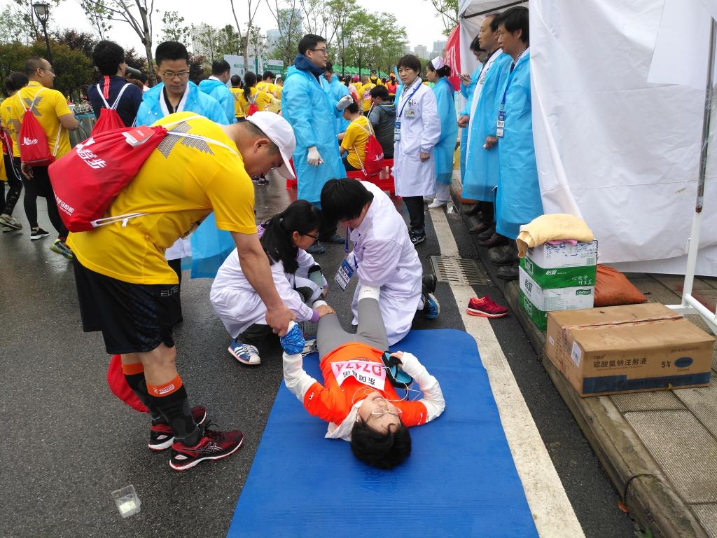 据悉,今年汉马参赛人数增至22000人,是武汉历史上举办的规模最大、参与度最广的国际化赛事。轻工大康复专业师生以志愿服务为契机,赛前积极做好急救操作技能培训,强化运动损伤处理的专业技能,提前调试好相关治疗仪器,竭力为参赛选手提供安全、优质的医疗卫生保障服务。