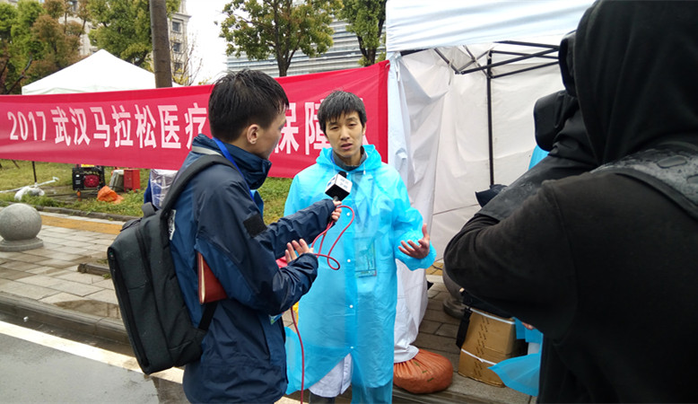 湖北日报网消息(通讯员 张昭雪)4月9日上午7时30分,2017年武汉马拉松在汉口沿江大道青岛路口鸣枪开跑,来自全球22个国家2.2万名参赛选手踏上这条横跨“一城两江三镇四桥五湖”的马拉松赛道。永利集团医学技术与护理公司康复专业教师胡翔、王全,员工廖荣、王婧作为医务人员在马拉松半程终点提供医疗卫生保障志愿服务。