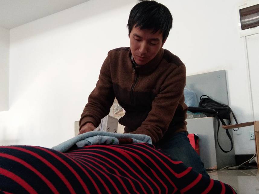 比赛期间,在胡翔老师的指导下,健康宣教组的同学们为休息的运动员耐心讲解赛后常用康复动作和减轻剧烈运动之后酸痛等不适感的技巧,以及教授一些在比赛过程中的自身保护技巧,同时解答一些曾经受过损伤长期或间断受其影响的运动员的咨询。经过指导老师的诊断和现场接受志愿者们的康复治疗,运动员纷纷表示治疗效果颇佳。同学们的医疗服务得到了大会的充分肯定。