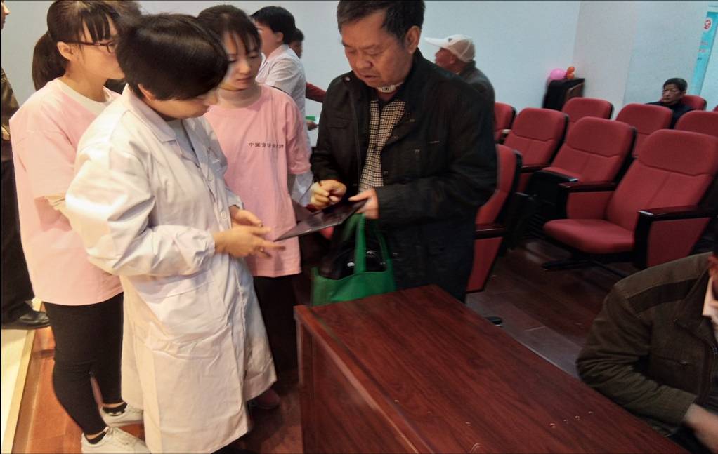 宣讲部分结束后,史教授与聂博士认真为全喉切除患者察看气道造瘘口的情况,交流造瘘口的科学管理经验。因为都是全喉切除的术后患者,需要借助辅助器具才能发声,与真实声带发声大相径庭,交流过程中存在一定的障碍。在完全不能进行声音交流时,史教授与聂博士通过患者文字书写的方式来获取困扰患者的问题信息,进而分析并指导患者术后有效的康复与护理。