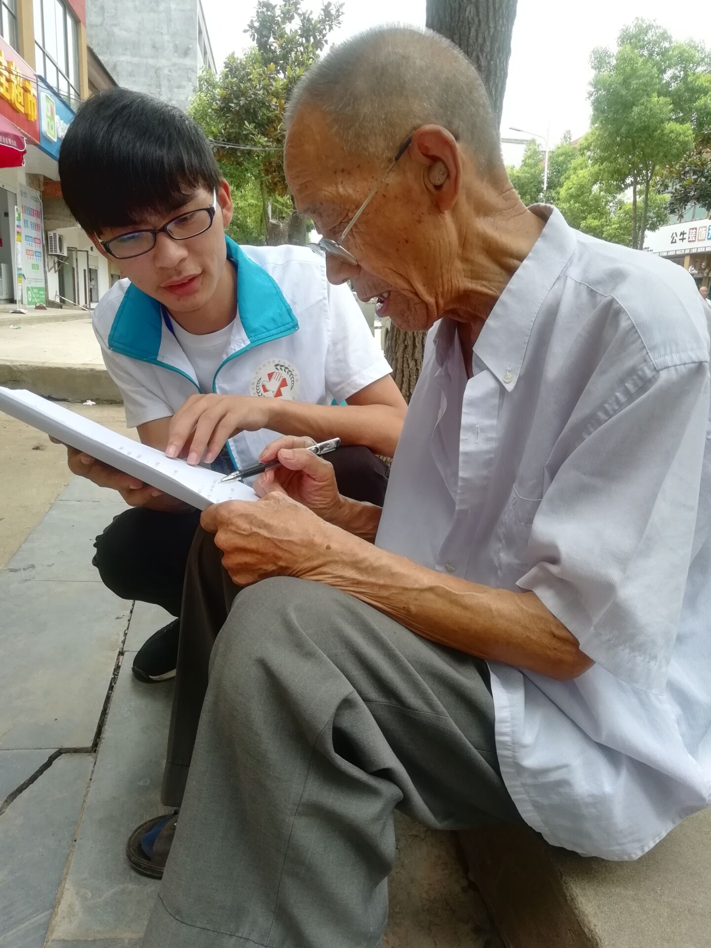 7月13日,安阳镇福利院相比往常格外热闹,老人们早早地来到安阳镇福利院大厅,等待活动的开始,此次活动分为义诊、健康宣教和赠送药品三个部分。义诊区,青年志愿者们给老人进行血压普查并询问既往病史,专家教授针对老人的病史和症状给出健康指导。宣教区,志愿者就高血压的防治和禁忌、传染病的预防等做了普及教育。活动结束后,志愿团队向福利院捐赠了部分常用药品。