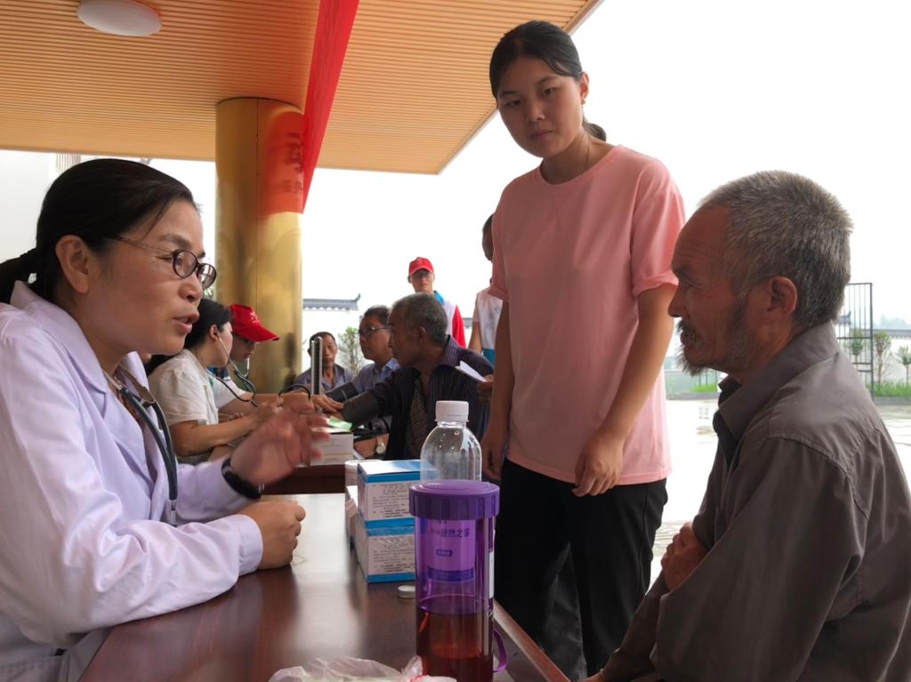 王全老师和汪欧阳老师为村民做检查