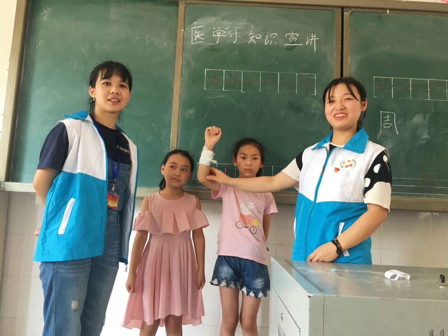 7月14日,志愿者们前往安阳镇中心小学看望留守儿童,为他们上一堂“健康课”,普及健康小知识。对遇到突发疾病如何处理?有伤口该怎么办?正确的洗手姿势是什么?志愿者们用这些日常生活中经常遇见的问题提问,小朋友们热情高,纷纷举手发言。在上课过程中还进行分组“实战演示包扎手法”和学习“洗手操”,现场气氛活跃。