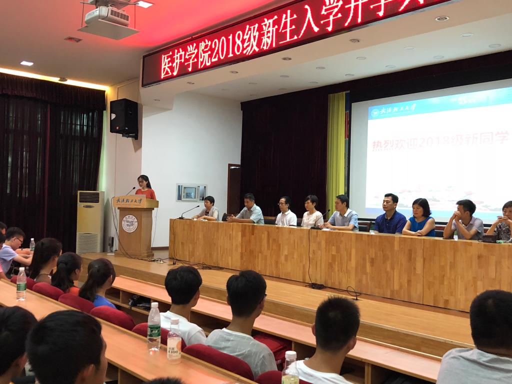 周富平书记代表医护公司全体师生欢迎新同学的到来,他赠给新同学四句话:在宁静中追问本心,在宁静中坚守初心,在宁静中励志笃行,在宁静中学会读书。周书记强调:大学是人生中最美好的时光,只有努力和奋斗过的时光回忆起来才会无怨无悔。