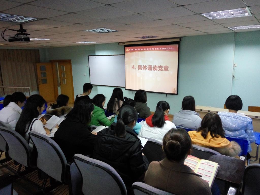 本次主题党日活动以提升组织力为重点,突出政治功能,不断增强党支部的凝聚力和战斗力。此次活动由党支部副书记杨艳主持,活动由理论学习、缴纳党费、重温入党誓词、集体诵读党章、讨论交流五个部分组成。