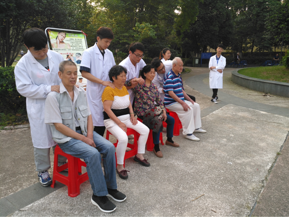 康复治疗组的同学主要负责给患有颈椎、腰椎、和腰腿疼痛等疾病的居民提供健康有效的建议,根据居民们的身体情况、主要症状采取了不同的推拿按摩手法,教他们如何更好的进行锻炼、利用康复治疗手法缓解疼痛,保证身体的康健与生活质量。血压组的同学对前来咨询的居民进行了血压的测量,并针对他们的身体情况给出了较好的建议,比如:生活中要学会控制饮食,多吃绿色蔬菜和新鲜水果,少吃含胆固醇高的食物,健康饮食。另外,还要加强锻炼,保证充足的睡眠,保持良好的心态,及时预防和控制高血压的发生等等。