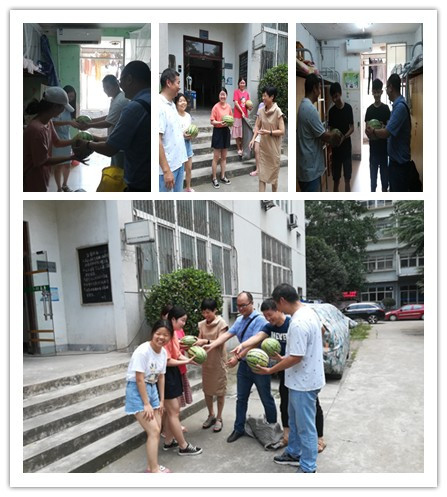 上午10时,公司领导对常青公寓C栋、D栋,东校区11栋留校的本科生、研究生进行了慰问,领导们走进员工宿舍,询问暑期实习员工的工作及生活情况,关心同学们的吃住行。张红菱书记特别对员工留校学习、上班工作途中的安全进行了关注,要求同学们注意防火、防电、防溺水、防医疗事故、防交通安全、防中暑等安全事项。随后将公司送来的300斤西瓜等慰问品分发给了每个员工宿舍。