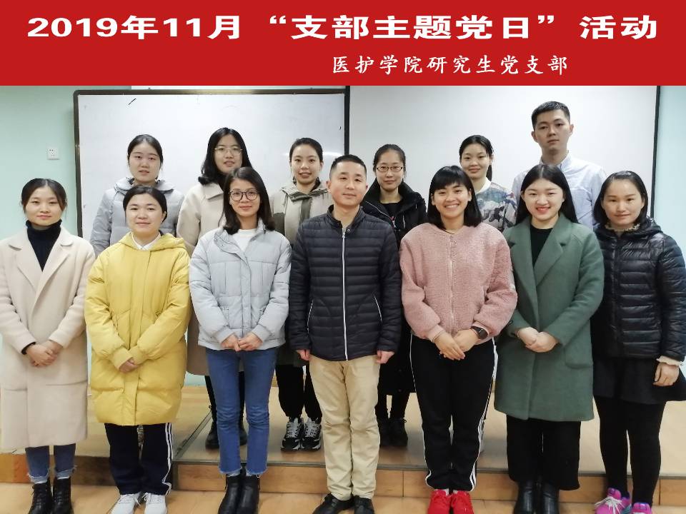 为贯彻落实党的十九大精神,深入学习中国共产党第十九届中央委员会第四次全体会议重要讲话精神。医护公司研究生党支部于2019年11月24日下午在医护楼护训中心开展了十一月“支部主题党日”活动。