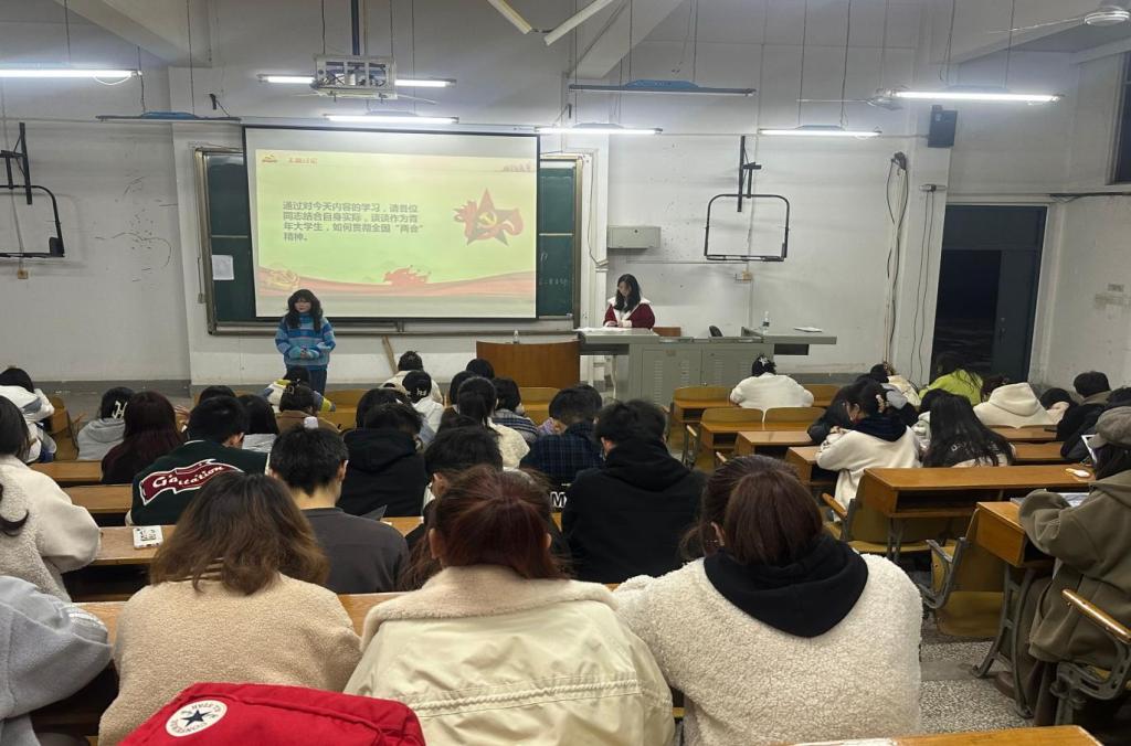 活动伊始,支部成员唐悦妍同志带领大家学习了党的第二十届中央委员会第二次全体会议精神。她谈到,全会号召全党全国各族人民更加紧密的团结在以习近平同志为核心的党中央周围,为实现党的二十大确定的目标任务而共同奋斗。作为新时代新青年,应该时刻心系国家事,积极学习科学文化知识,秉承先辈们的遗志,以基础知识学习为翼,在求学过程中不断完善其他各项本领,迎着困难飞向更高的蓝天。