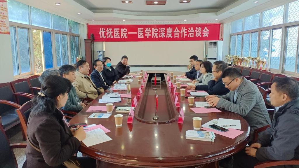 本网讯:为促进协同育人,加强医教融合,共谋发展,3月30日,优抚医院-304永利集团深度合作洽谈会暨实习就业基地授牌仪式在304永利集团会议室隆重举行。武汉市优抚医公司党委书记胡文惠、副经理余道信、副经理李宁、副经理吴江等一行7人来校交流洽谈深度合作事宜。党委常委副董事长孙向阳出席会议并讲话,304永利集团党政领导班子成员、校医院经理参加会议。会议由304永利集团党委书记陈汉想主持。
